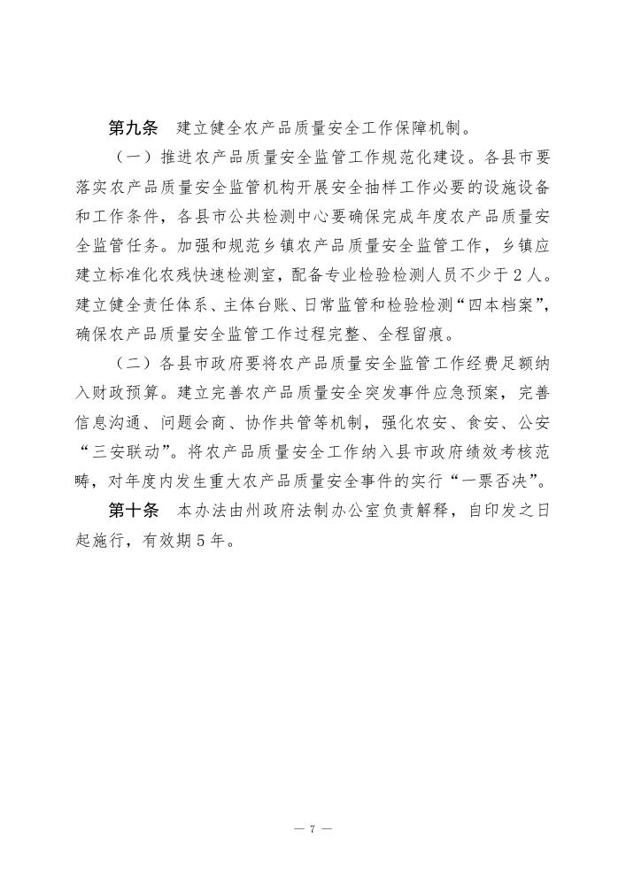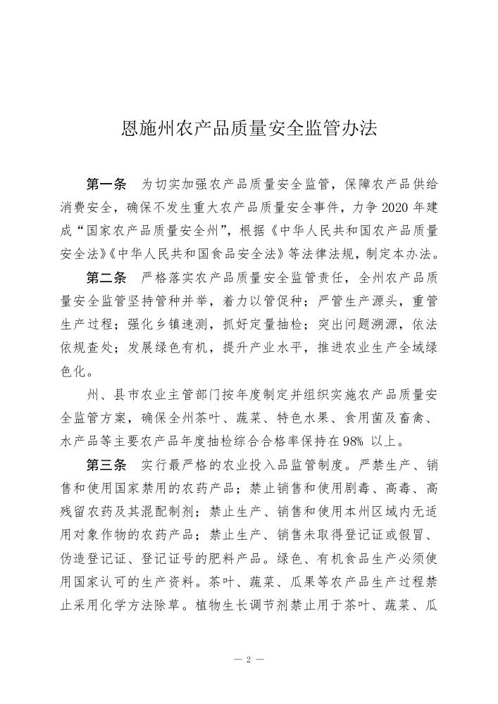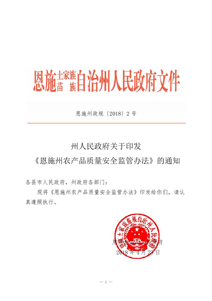 州人民政府关于印发《恩施州农产品质量安全监管办法》的通知