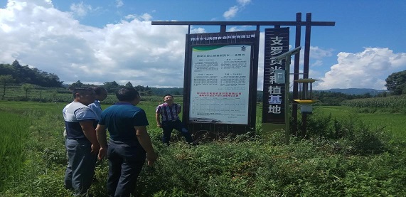 2019年8月1日,利川市农业农村局李伯韬副局长,农安办主任姚美陪同州绿办主任饶孝武同志一行来谋道镇支罗村指导有机大米申报工作。
