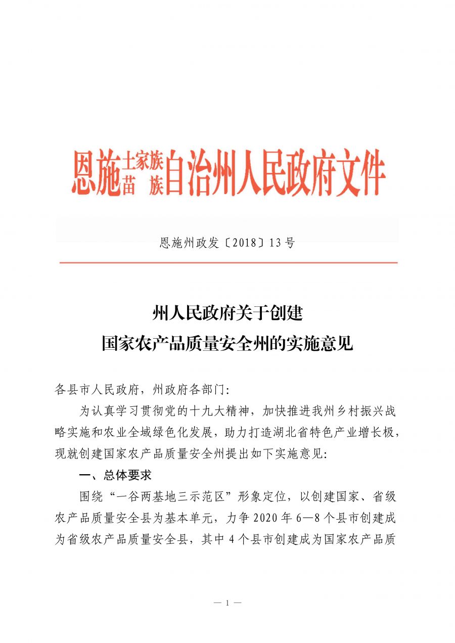 州人民政府关于创建国家农产品质量安全州的实施意见