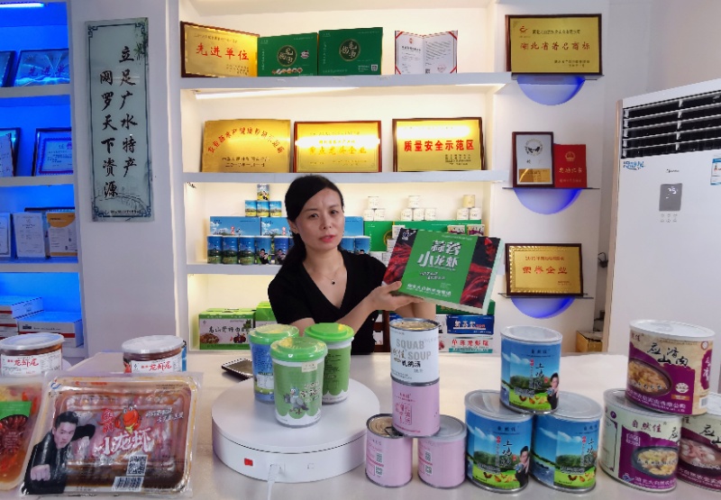 今天上午,在位于广水市的湖北大自然农业实业有限公司里,营销总监刘红梅正在通过网络给全国的“吃货”们推荐蒜蓉小龙虾。刘红梅介绍,大自然农业成立于2007年,是一家主营小龙虾、淡水鱼、特色蔬菜、食用菌的省级重点龙头企业,为减小疫情带来的影响,公司在湖北省农业农村厅的指导下,积极探索出口转内销的路径,通过电商平台直播、短视频带货等方式,有效地开拓了销售渠道,同时也扩大了企业品牌知名度。今年上半年,公司在国内市场的销售额就已经达到了1.5亿元,总销售额基本与去年同期持平。