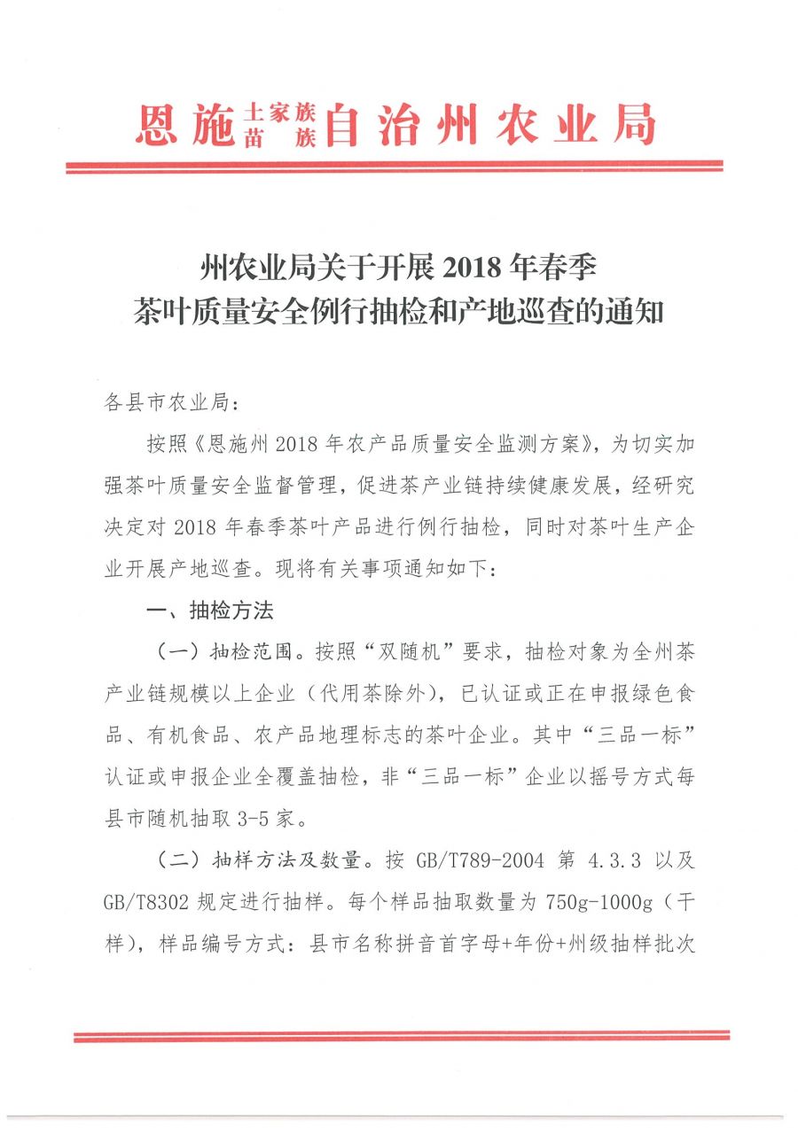 州农业局关于开展2018年春季茶叶质量安全例行抽检和产地巡查的通知